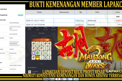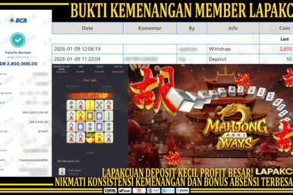 Lapakcuan – Hari ini menjadi momen yang sangat istimewa bagi para pemain LAPAKCUAN, khususnya penggemar game populer Mahjong Ways dari PG Soft. Banyak pemain berhasil mencatatkan kemenangan terb...